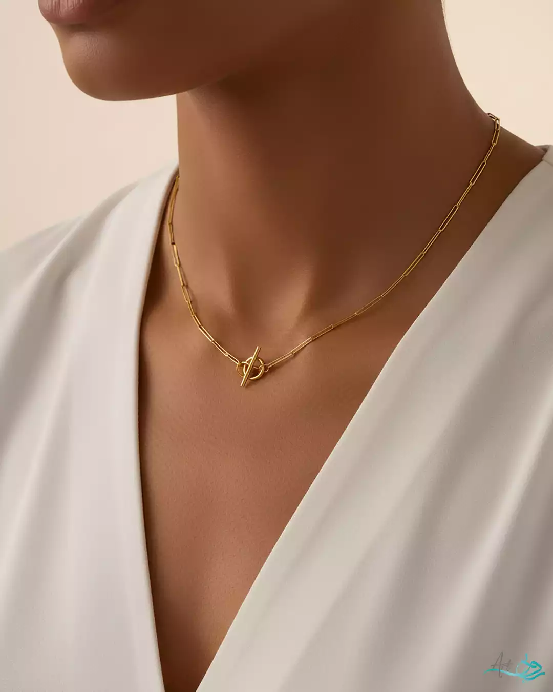 - گردنبند طلا زنجیری گیره کاغذی قفل تی