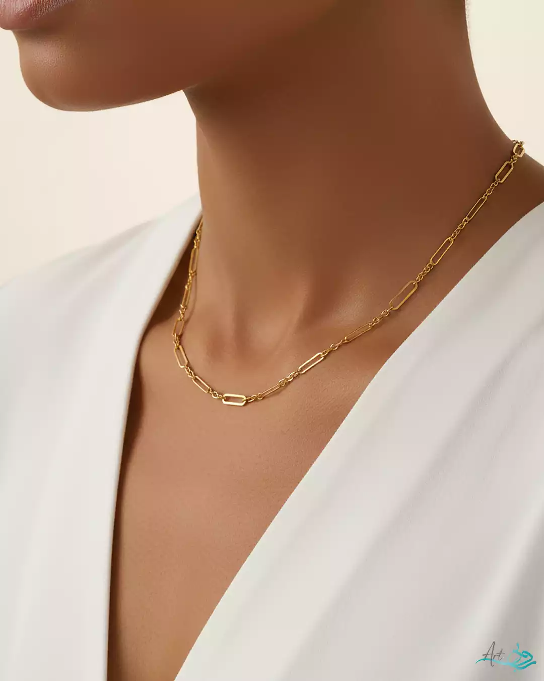 - گردنبند طلا زنجیری گیره کاغذی و زنجیر دیور