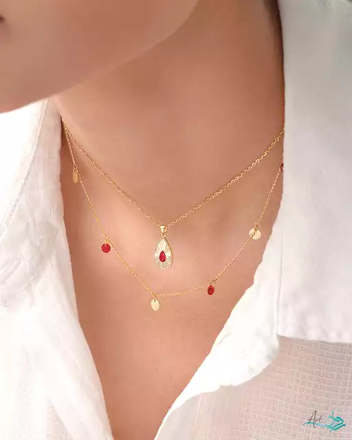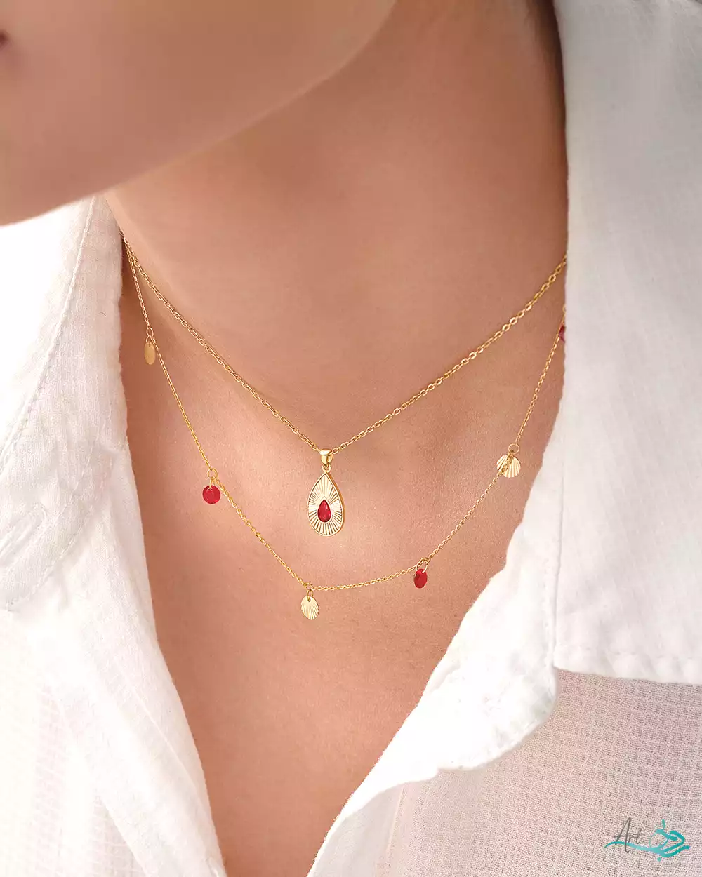 گردنبند طلا زنجیری پولکی ناردون پولکی قرمز