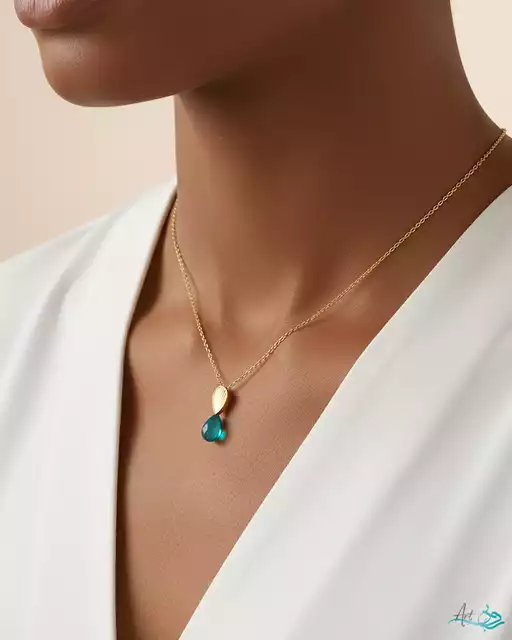 - گردنبند طلا زنجیری قطره سرخینه سنگ فیروزه ای