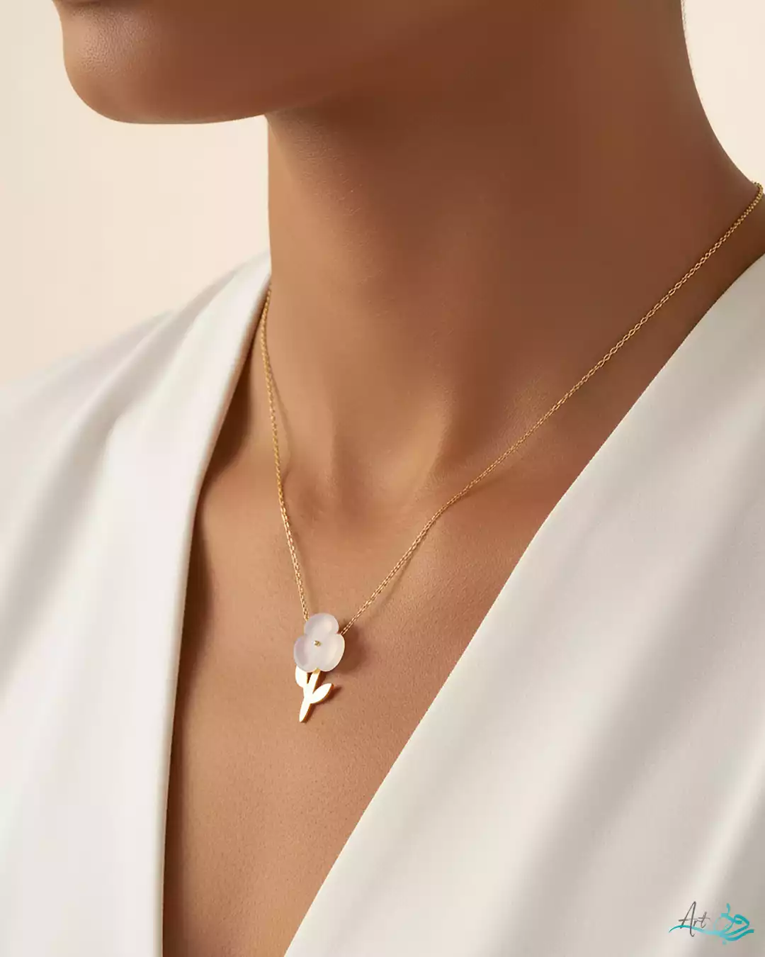 «گردنبند طلا گل صدفی» با طراحی الهامگرفته از شکوفههای طبیعی، ترکیبی از زیبایی ارگانیک و درخشش طلای خالص است. گل صدفی لطیف، با درخشش طبیعی و بافت نیمهشفاف، در کنار بدنهی طلایی، حس زنانگی، آرامش و تازگی را به همراه دارد.