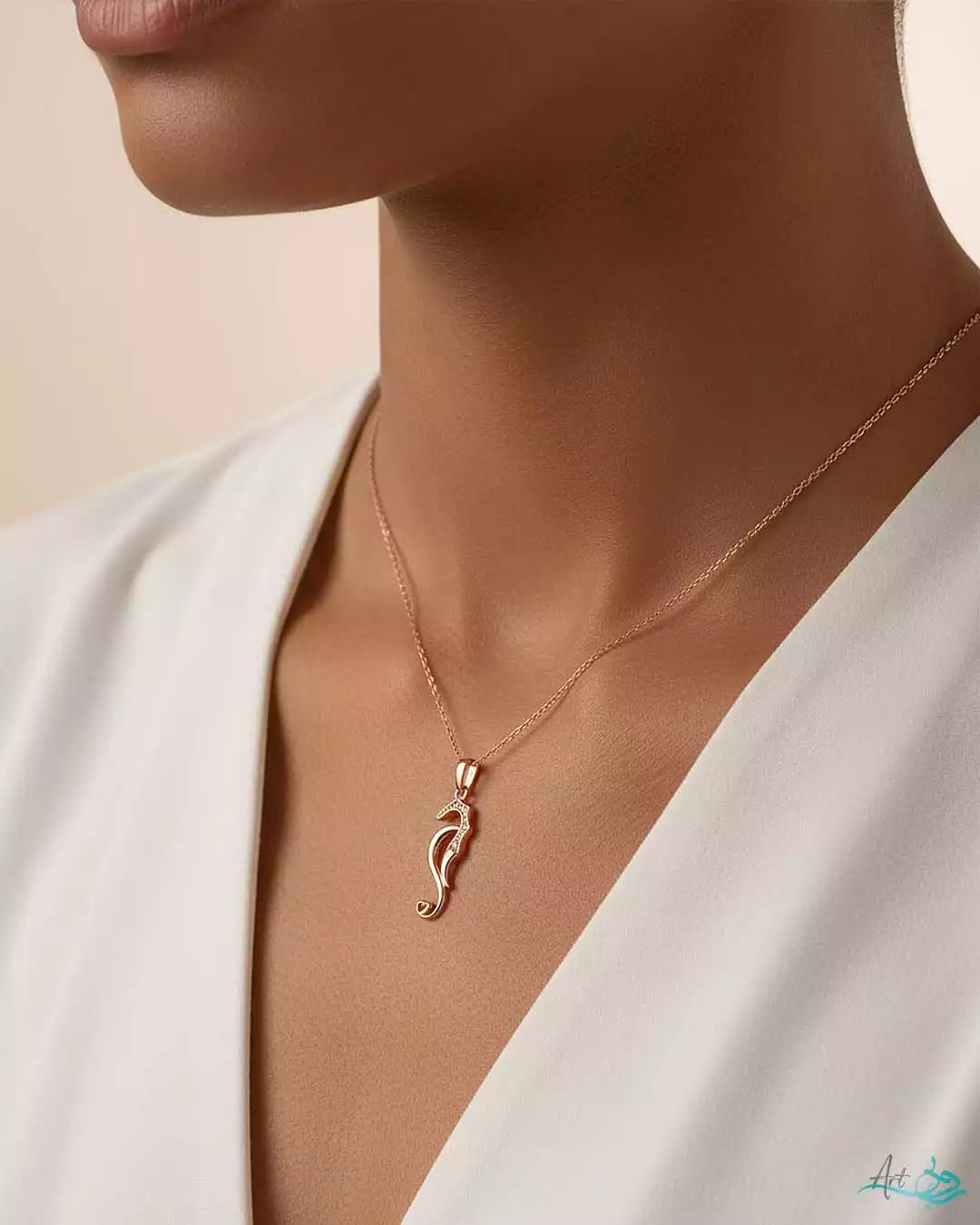 گردنبند طلا اسب آبی نگین دار