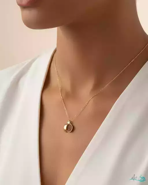 - گردنبند طلا انار با سنگ های ریز یاقوتی