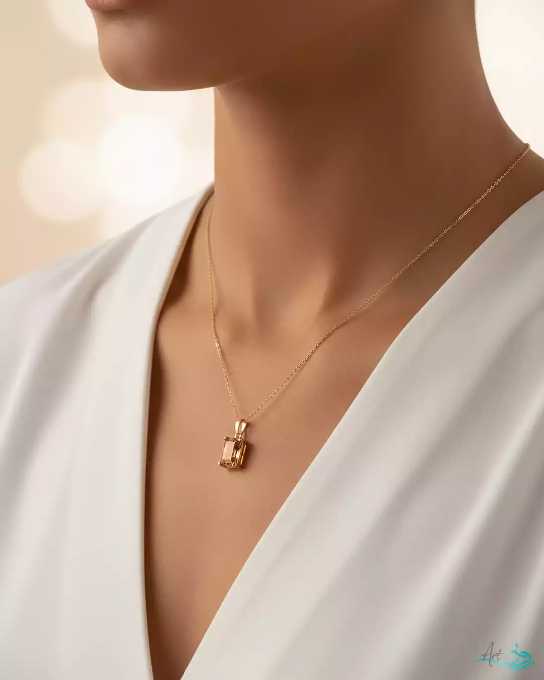 - آویز طلا با برش رادیان کات گلبهی سنتتیک