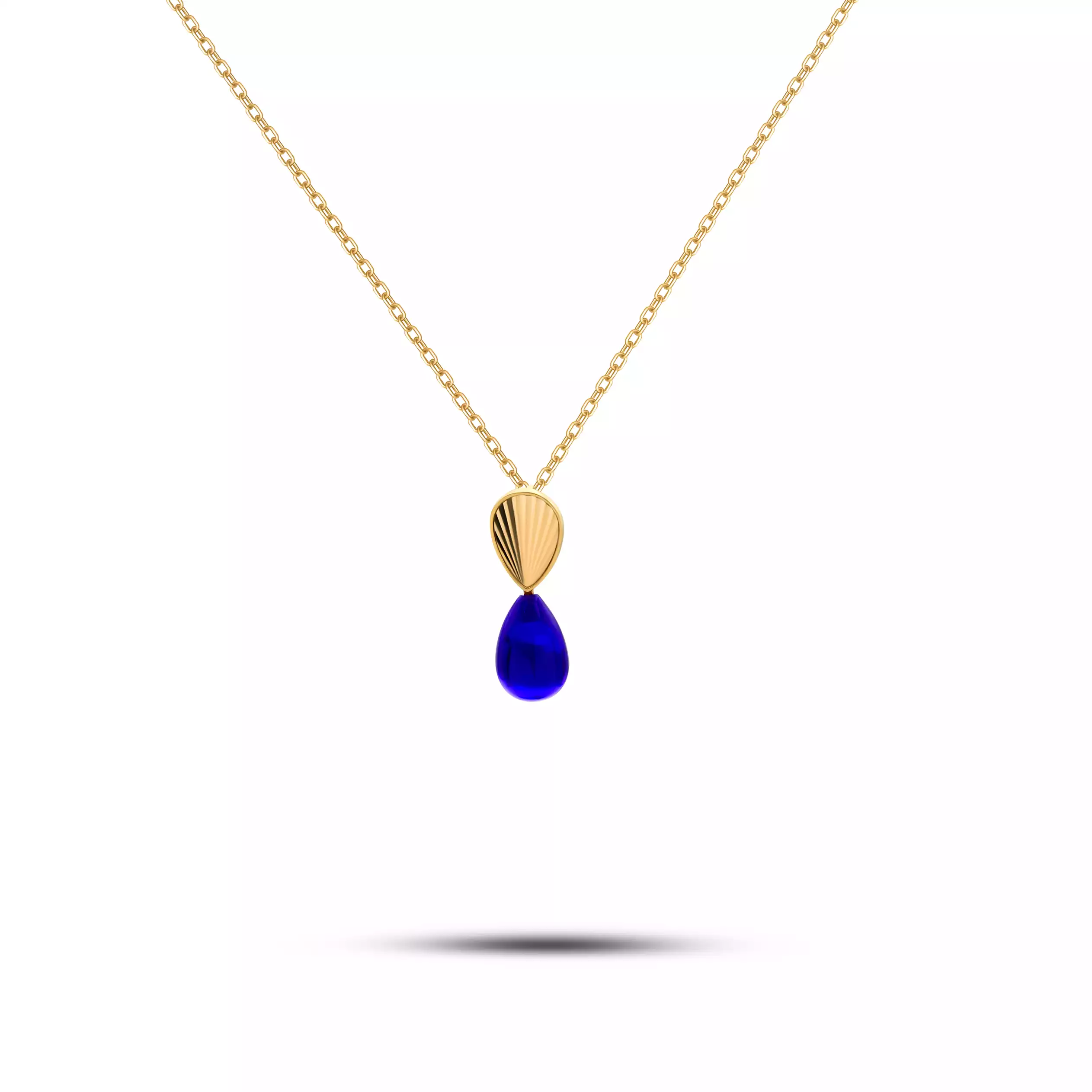 - گردنبند طلا زنجیری قطره سرخینه سنگ آبی کاربنی