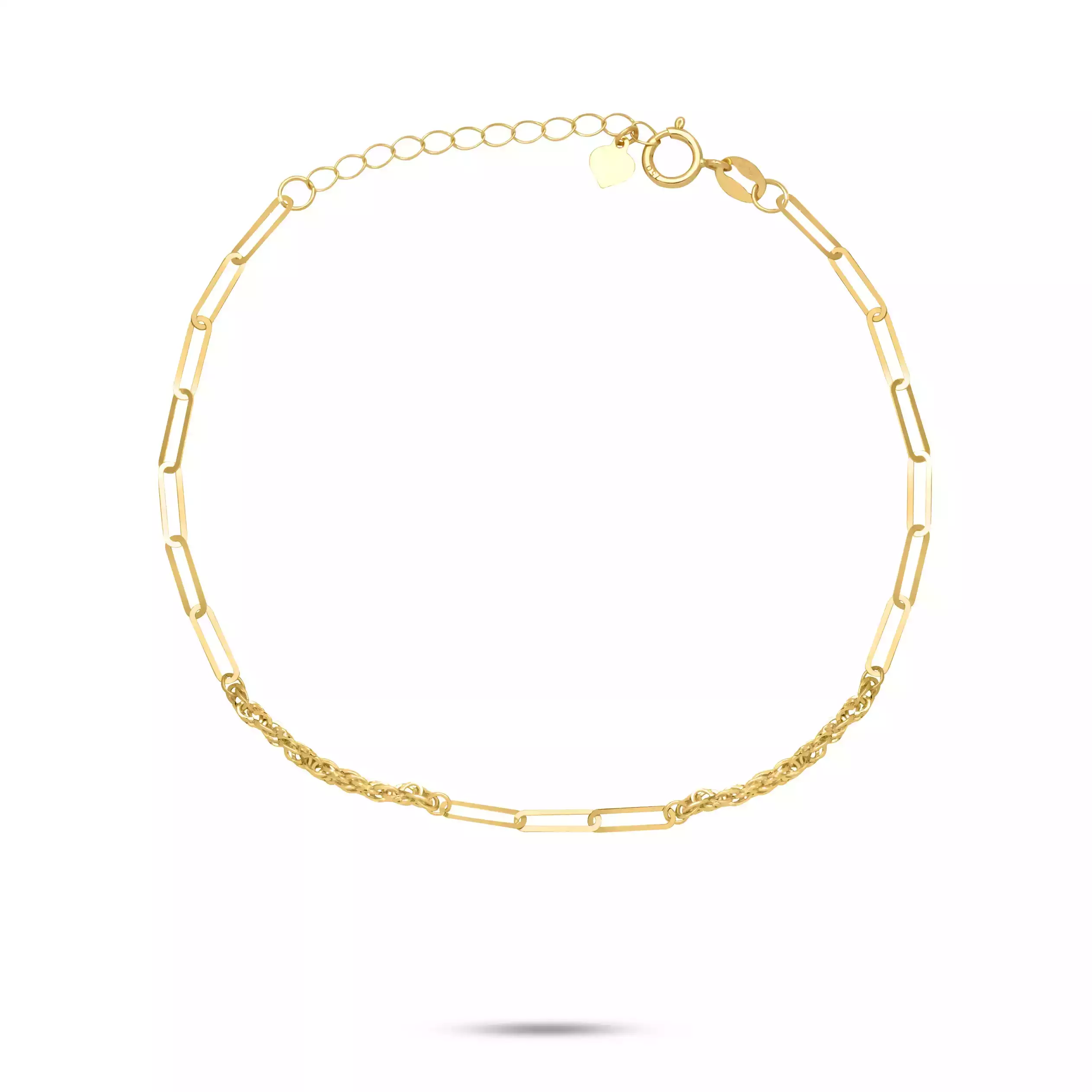 دستبند طلا زنجیری دیپلمات کارن با تراشهای درخشان و لینکهای کشیده، انتخابی ماندگار برای هر استایل است. همین حالا سفارش دهید و از بستهبندی شیک و ارسال سریع روبی گالری بهرهمند شوید!