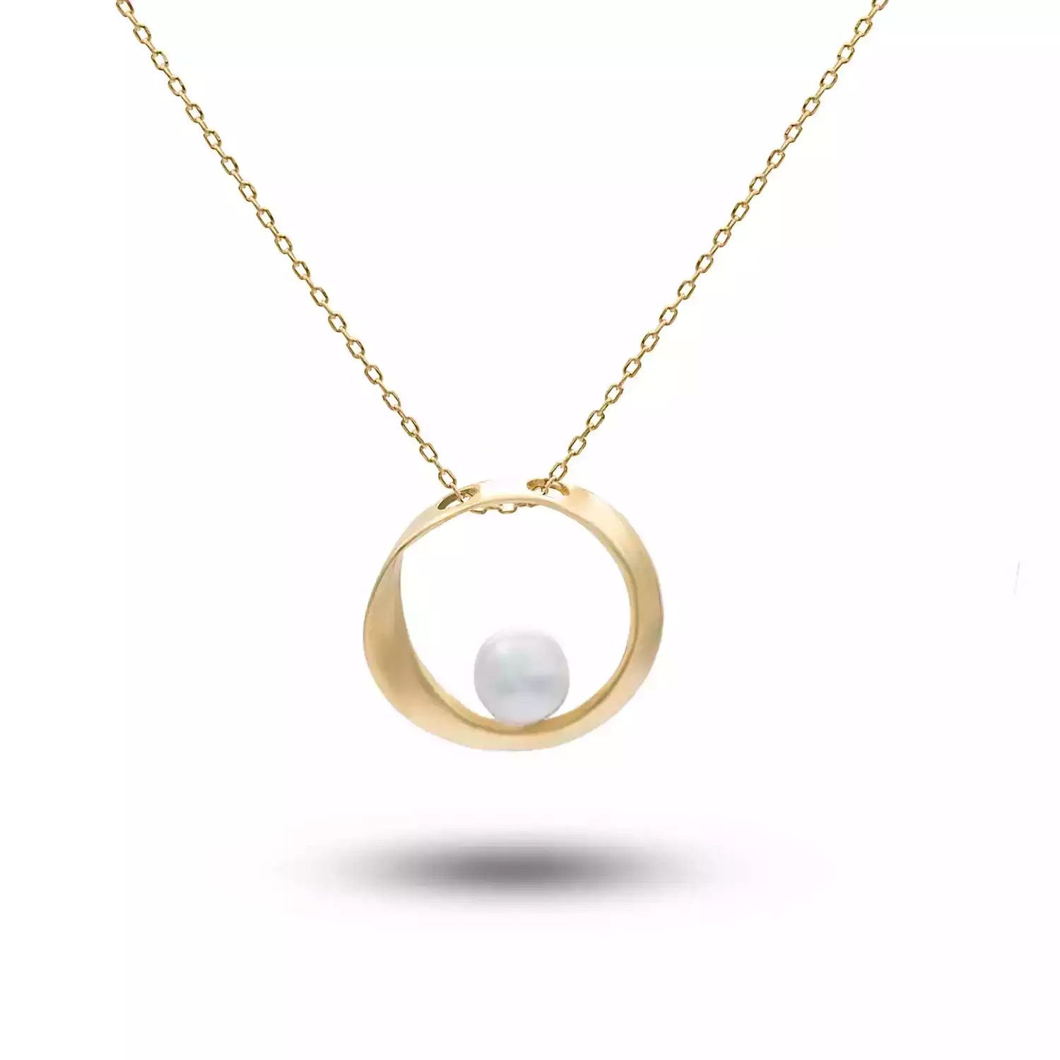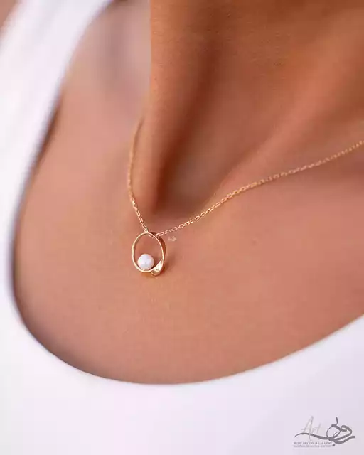 طول گردنبند 41 سانت و قطر دایره 1 سانت است. در داخل دایره در قسمت پلاک یک عدد مروارید طبیعی کار شده است.