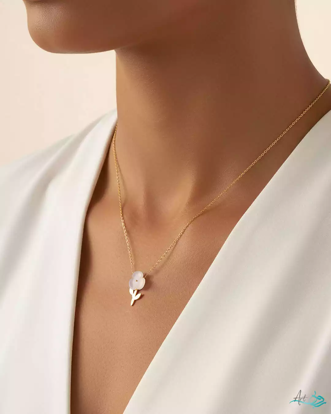 • آویز به شکل گل با ترکیب صدف طبیعی و طلای ۱۸ عیار
