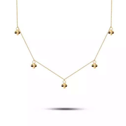 «گردنبند طلا پولک و سنگ مارکو سبز» با آویزهای پولکی طلایی و سنگهای گرد زمردی، تلفیقی از رنگ و براقیت را روی گردن شما میآفریند. حرکت نرم پولکها و درخشش سبز سنگها حس سرزندگی را به هر استایل کژوال یا نیمهرسمی میافزاید.