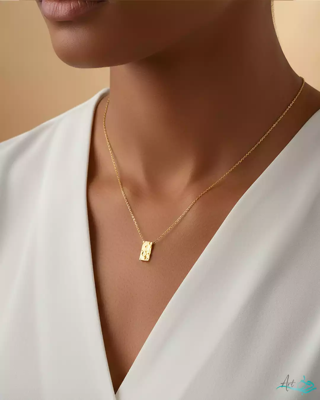 • پلاک مستطیلی از طلای ۱۸ عیار با بافت چکشی دستی