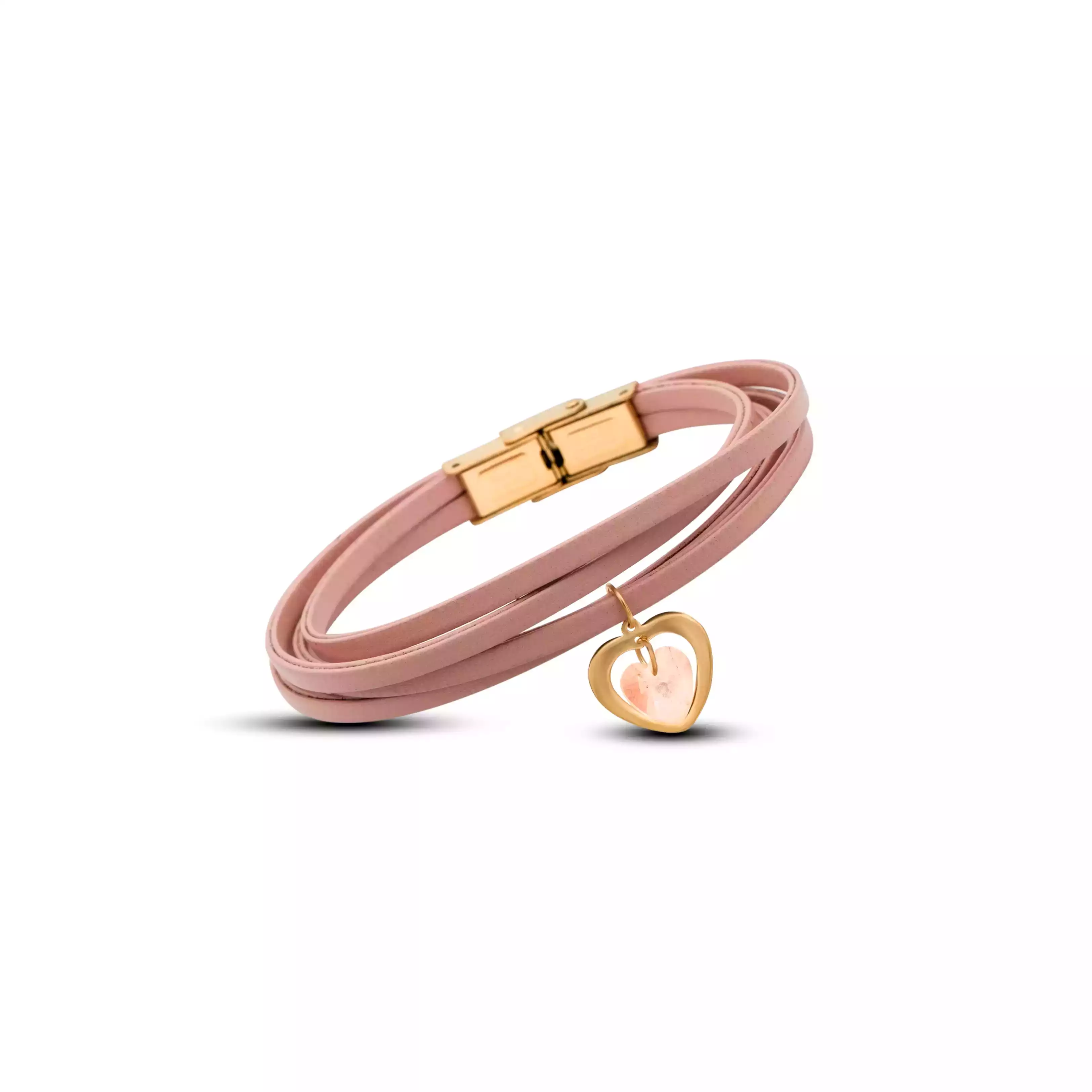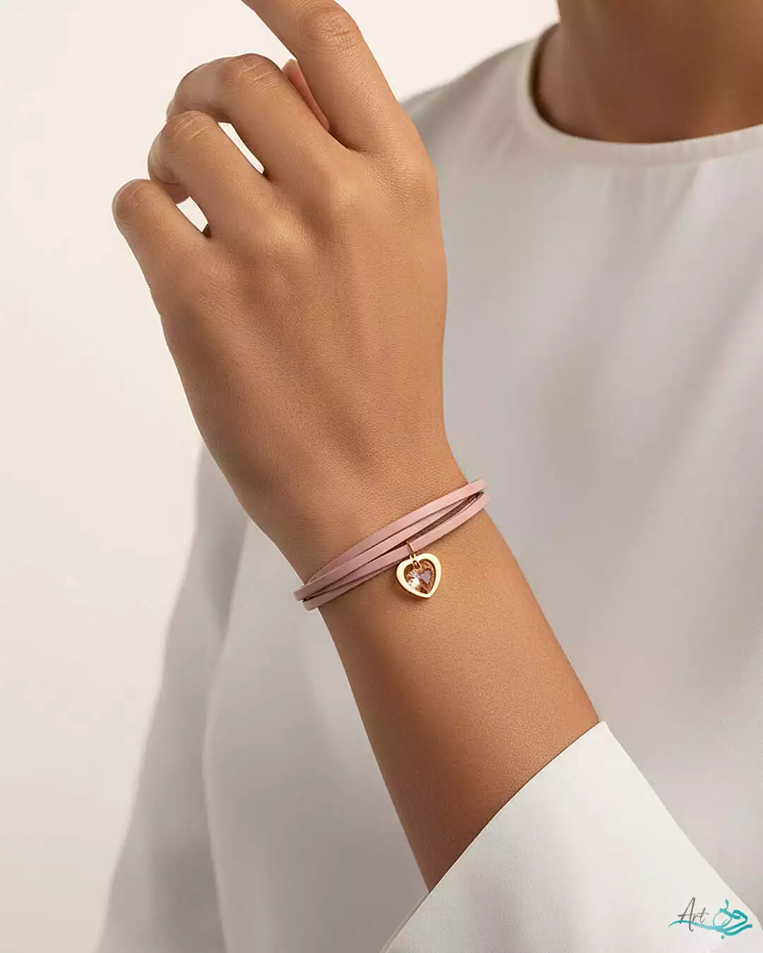 دستبند چرم و طلا قلب سواروسکی صورتی