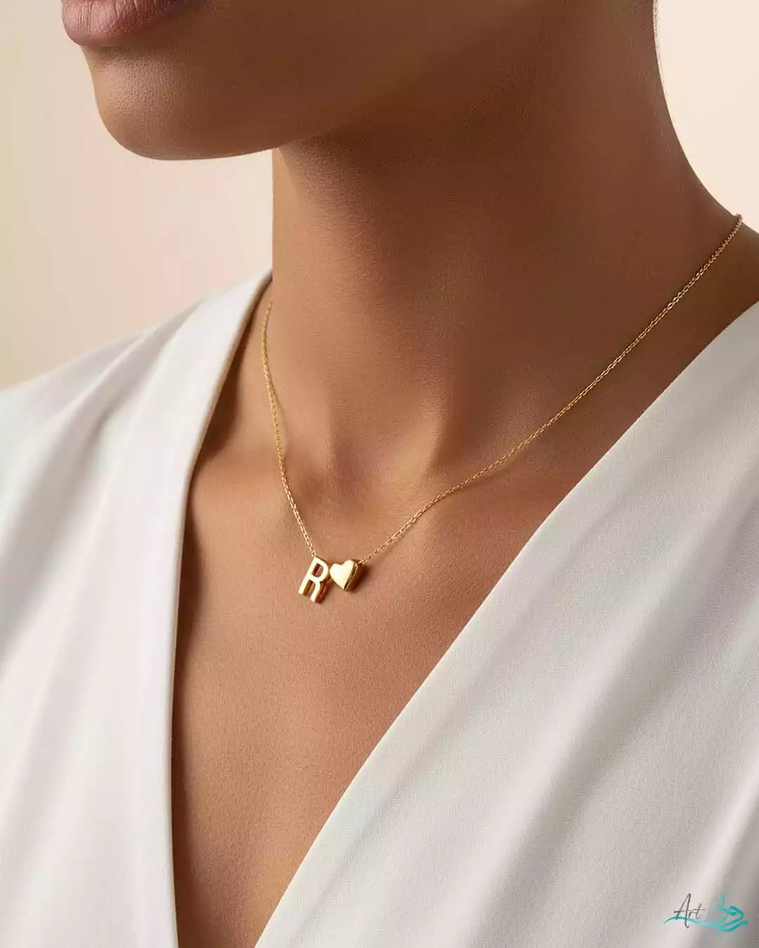 گردنبند طلا حروف R و قلب