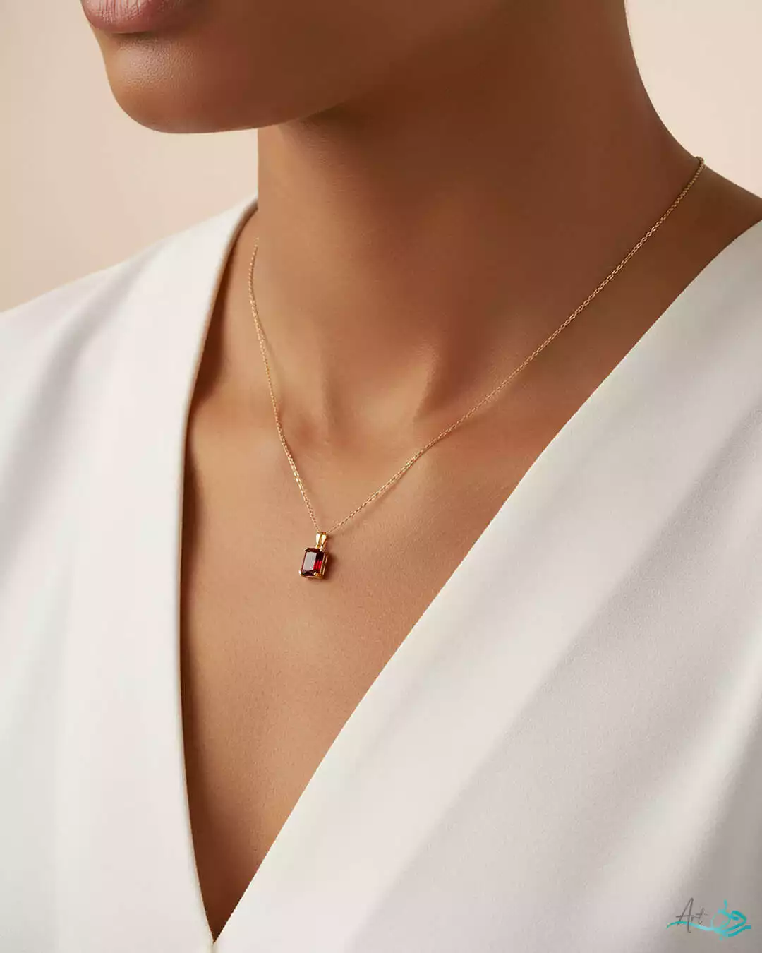 - آویز طلا با برش رادیان کات یاقوت قرمز سنتتیک
