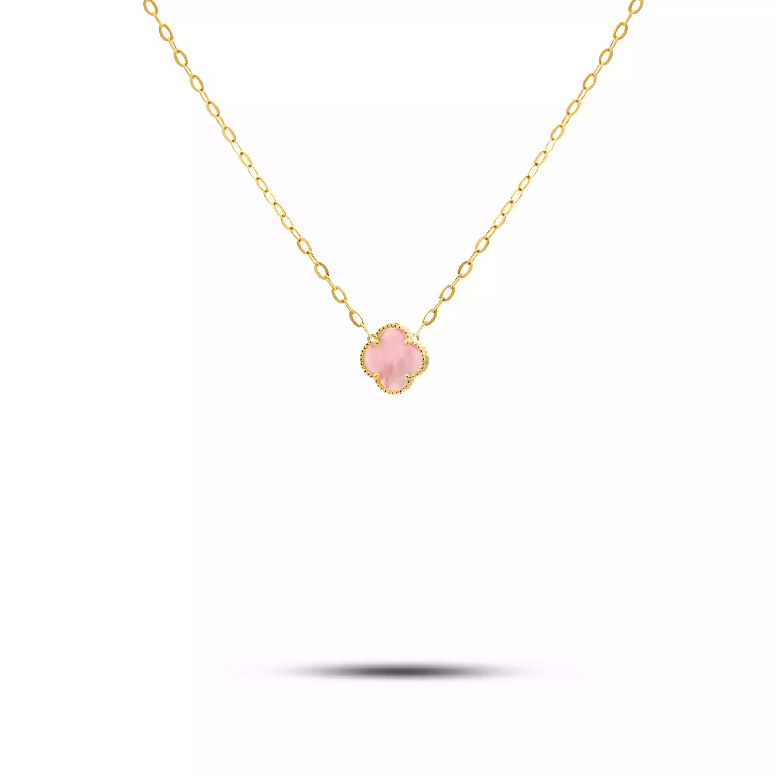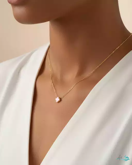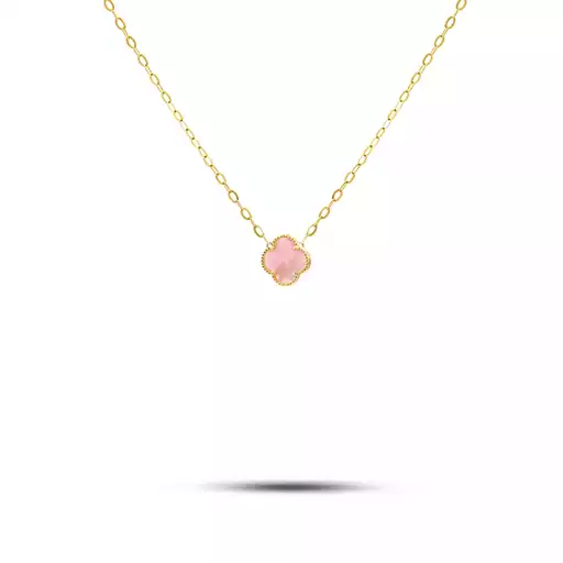گردنبند طلا زنجیری ونکلیف رزا صدف صورتی سایز کوچک