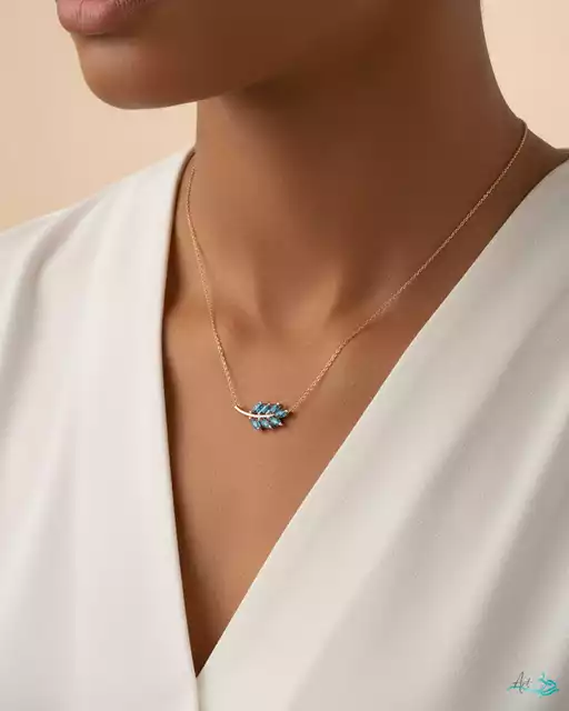 گردنبند طلا برگ با سنگ توپاز سنتتیک